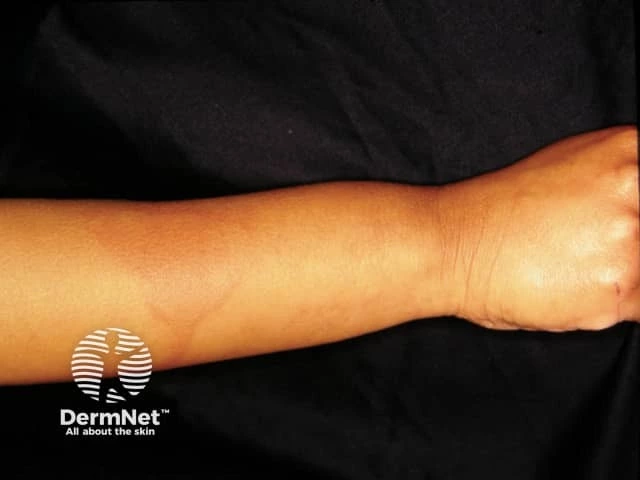 Hives are a rash that forms itchy, sometimes painful, raised welts (also called wheals) or blotches on your skin. Depending on your skin color, they can appear red, brownish, purple, or even the same color as the rest of your skin.